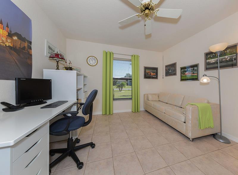 Dieser Raum ist mit Büromöbeln ausgestattet. Dort ist auch der Router und WLAN für den Internetanschluß installiert. Ein Klappsofa kann bei Bedarf zu einem Queensize-Bett ausgezogen werden. Auch hier ein kleiner Abstellraum.